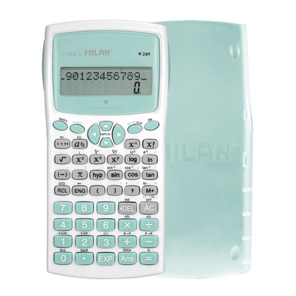 | descripcion_html | Milan Blíster calculadora científica M240 turquesa, Edición +. Factor de forma: Bolsillo, Tipo: Calculadora científica. Dígitos: 12 dígitos, Número de líneas en pantalla: 2 líneas. Fuente de energía: Batería. Cubierta, Color del producto: Turquesa, Blanco