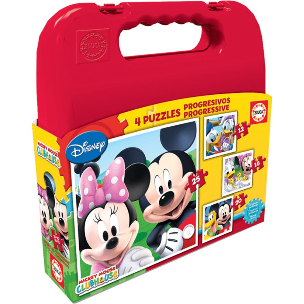 MALETA PUZZLES PROGRESIVOS MICKEY MOUSE 12-16-20-25 DE 3-6 ANOS EDUCA BORRAS 16505