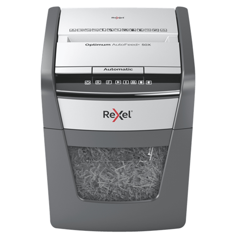 | descripcion_html | Rexel Optimum AutoFeed+ 50X. Tipo de triturador de papel: Corte cruzado, Ancho de trabajo: 22 cm, Tamaño de trituración de papel: 4 x 28 mm. Consumo energético: 200 W. Ancho: 363 mm, Profundidad: 430 mm, Altura: 405 mm. Periodo de garantía: 2 año(s)