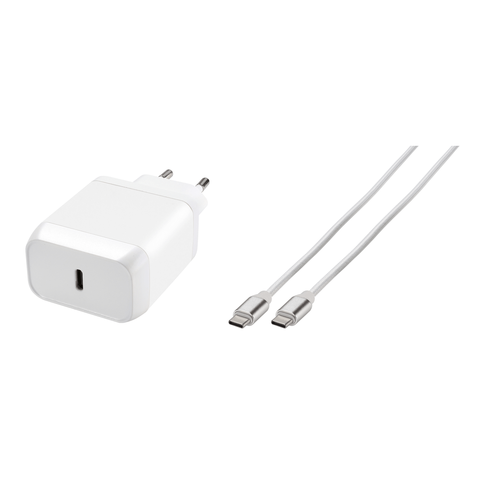 | descripcion_html | Vivanco Super Fast Power Delivery Charger Set. Tipo de cargador: Interior, Alimentación: Corriente alterna, Compatibilidad del cargador: Universal. Voltaje de entrada: 110 - 240 V. Número de puertos USB Tipo C: 1. Longitud de cable: 1 m, Color del producto: Blanco
