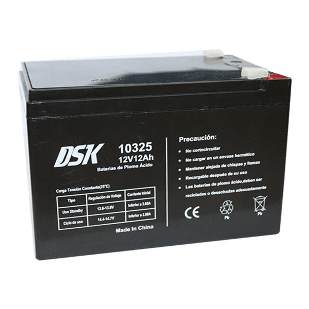 | descripcion_html | DSK 10325. Tecnología de batería: Sealed Lead Acid (VRLA), Voltaje de la pila: 12 V, Capacidad de batería: 12000 mAh. Ancho: 151 mm, Profundidad: 98 mm, Altura: 99 mm