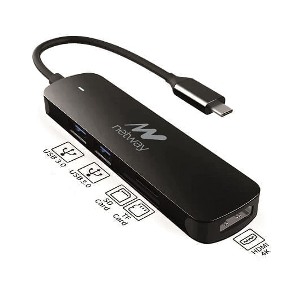 | descripcion_html | Dock Netway USB-C. Interfaz de host: USB Type-C, Interfaces de concentradores: HDMI, USB 3.0, Tarjetas de memoria compatibles: MicroSD (TransFlash), SD. Máxima velocidad de actualización: 30 Hz, Formato de vídeo soportado: 4K, Color del producto: Negro. Ancho: 109 mm, Profundidad: 28.8 mm, Altura: 11.8 mm.