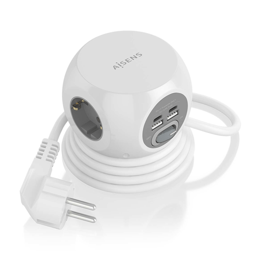| descripcion_html | AISENS Regleta de Enchufes Sobremesa Multifuncion con 3 Tomas + 2xUSB-C, 2xUSB-A, 1.4M, Blanco. Longitud de cable: 1,4 m, Colocación soportada: Interior, Tipo de salida AC: Tipo F. Cantidad de salidas AC: 3 salidas AC. Voltaje de entrada AC: 230 V, Frecuencia de entrada AC: 50 Hz, Potencia máx. de entrada: 3680 W. Ancho: 93 mm, Profundidad: 93 mm, Altura: 73 mm. Contenido del paquete: 1 x Base múltiple multifunción de sobremesa 1 x Manual de usuario multi-idioma