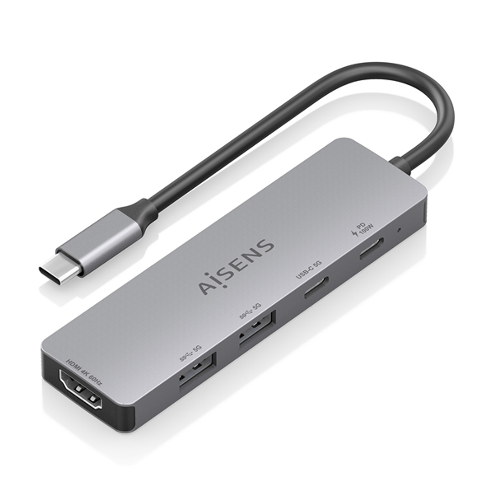 | descripcion_html | AISENS USB-C Dock 5 en 1, USB-C a 1xHDMI 2xUSB-A 1xUSB-C 1xUSB-C PD, Gris, 15cm. Tecnología de conectividad: Alámbrico, Interfaz de host: USB 3.2 Gen 1 (3.1 Gen 1) Type-C, Entrega de energía USB (USB Power Delivery) de hasta: 100 W. Color del producto: Gris, Velocidad de transferencia de datos: 5 Gbit/s, Tipo HD: 4K Ultra HD. Alimentación: USB, Conector eléctrico: USB Tipo C, Longitud del cable USB: 0,15 m. Ancho: 31 mm, Profundidad: 109 mm, Altura: 11 mm. Cantidad por paquete: 1 pieza(s), Ancho del paquete: 190 mm, Profundidad del paquete: 103 mm