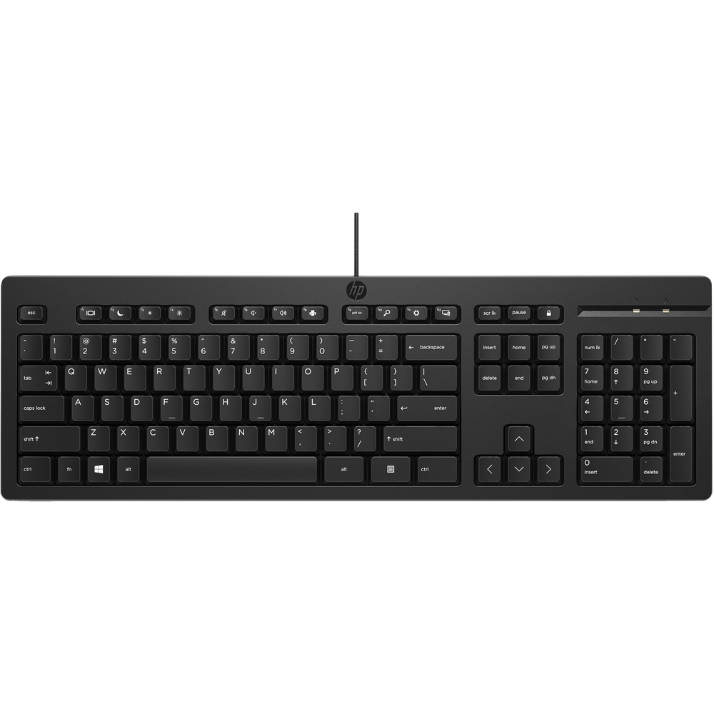 | descripcion_html | HP Teclado con cable 125. Formato del teclado: Completo (100%), Tecnología de conectividad: Alámbrico, Interfaz del dispositivo: USB. Longitud de cable: 1,8 m. Uso recomendado: Oficina. Color del producto: Negro