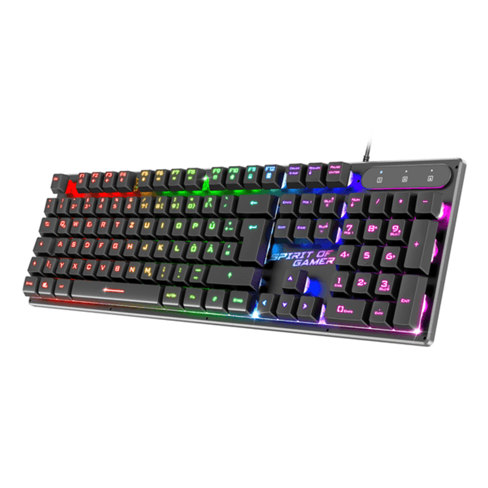 | descripcion_html | Spirit of Gamer PRO-K1. Formato del teclado: Completo (100%). Estilo de teclado: Derecho. Tecnología de conectividad: Alámbrico, Interfaz del dispositivo: USB, Interruptor del teclado: Interruptor de membrana, Diseño de teclado: QWERTY, Teclado, cantidad de teclas: 105. Tipo de retroiluminación: LED. Longitud de cable: 1,5 m. Concentrador USB, Uso recomendado: Juego. Color del producto: Negro