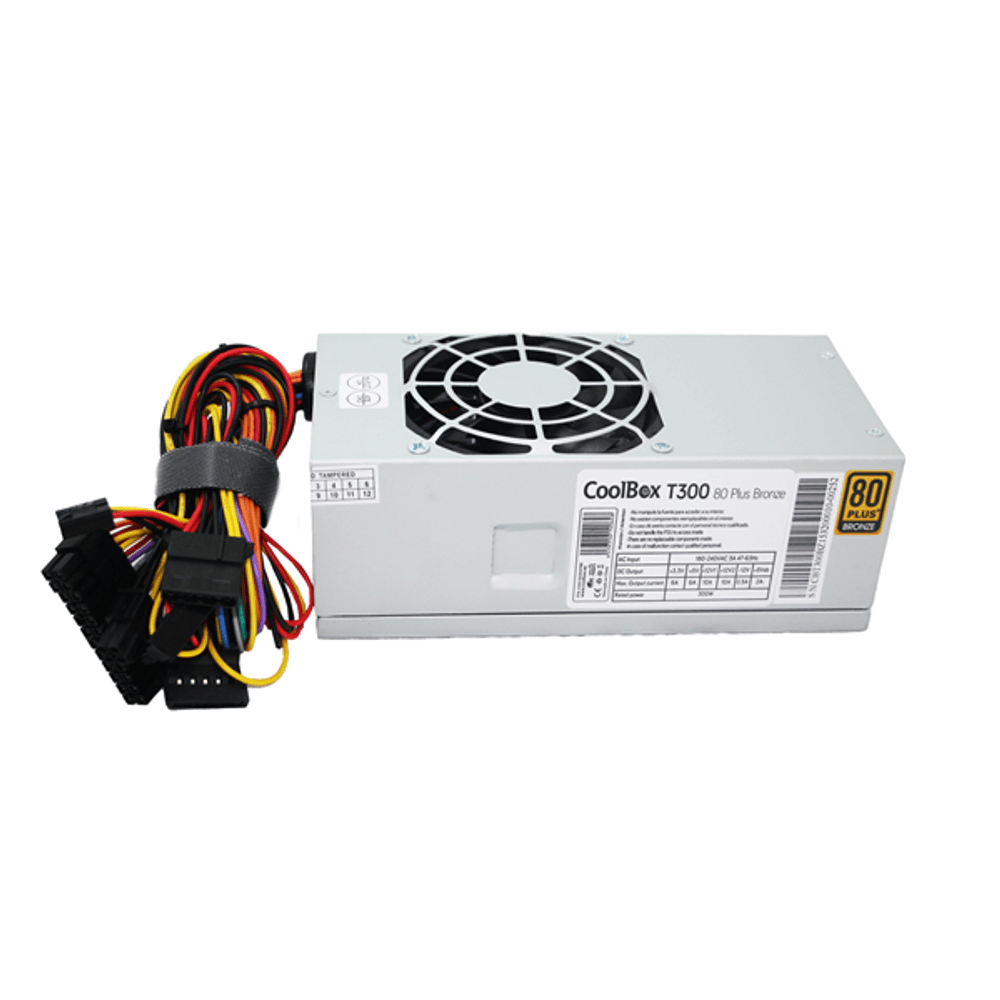 | descripcion_html | CoolBox FUENTE DE ALIMENTACION TFX 300W 80+ BRONZE (100V-240V). Potencia total: 300 W, Voltaje de entrada AC: 180 - 240 V, Frecuencia de entrada AC: 47 - 63 Hz. Alimentador de energía para tarjeta madre: 20+4 pin ATX, Tipo de cableado: No modular. Utilizar con: PC, Factor de forma de fuente de alimentación (PSU): TFX, Certificación 80 PLUS: 80 PLUS Bronze. Color del producto: Gris, Diámetro de ventilador: 8 cm, Número de ventiladores: 1 Ventilador(es). Ancho: 185 mm, Profundidad: 65 mm, Altura: 175 mm