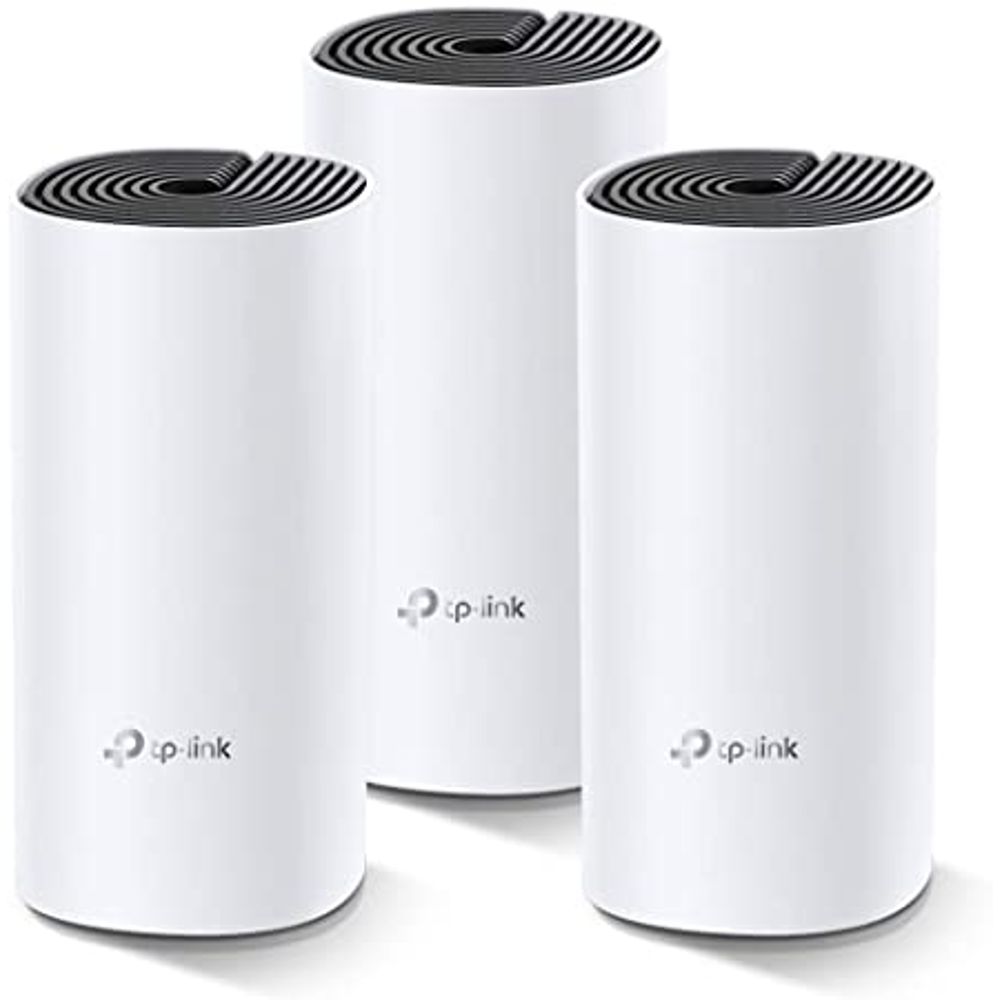 | descripcion_html | TP-LINK DECO M4(3-PACK). Color de la carcasa: Blanco, Tipo de antena: Interno, Indicadores LED: Poder, Estado. Banda Wi-Fi: Doble banda (2,4 GHz / 5 GHz), Estándar Wi-Fi: Wi-Fi 5 (802.11ac), Wi-Fi estándares: 802.11a,802.11b,802.11g,Wi-Fi 4 (802.11n),Wi-Fi 5 (802.11ac). Seguridad con cortafuegos: SPI, Sistemas operativos móviles soportados: Android 4.4,Android 5.0,Android 5.1,Android 6.0,Android 7.0,Android 7.1,Android 7.1.2,Android.... Voltaje de entrada de adaptador AC: 100 - 240 V, Frecuencia de adaptador AC: 50 - 60 Hz, Corriente de entrada del adaptador de CA: 0,4 A. Ancho: 90,7 mm, Profundidad: 90,7 mm, Altura: 190 mm