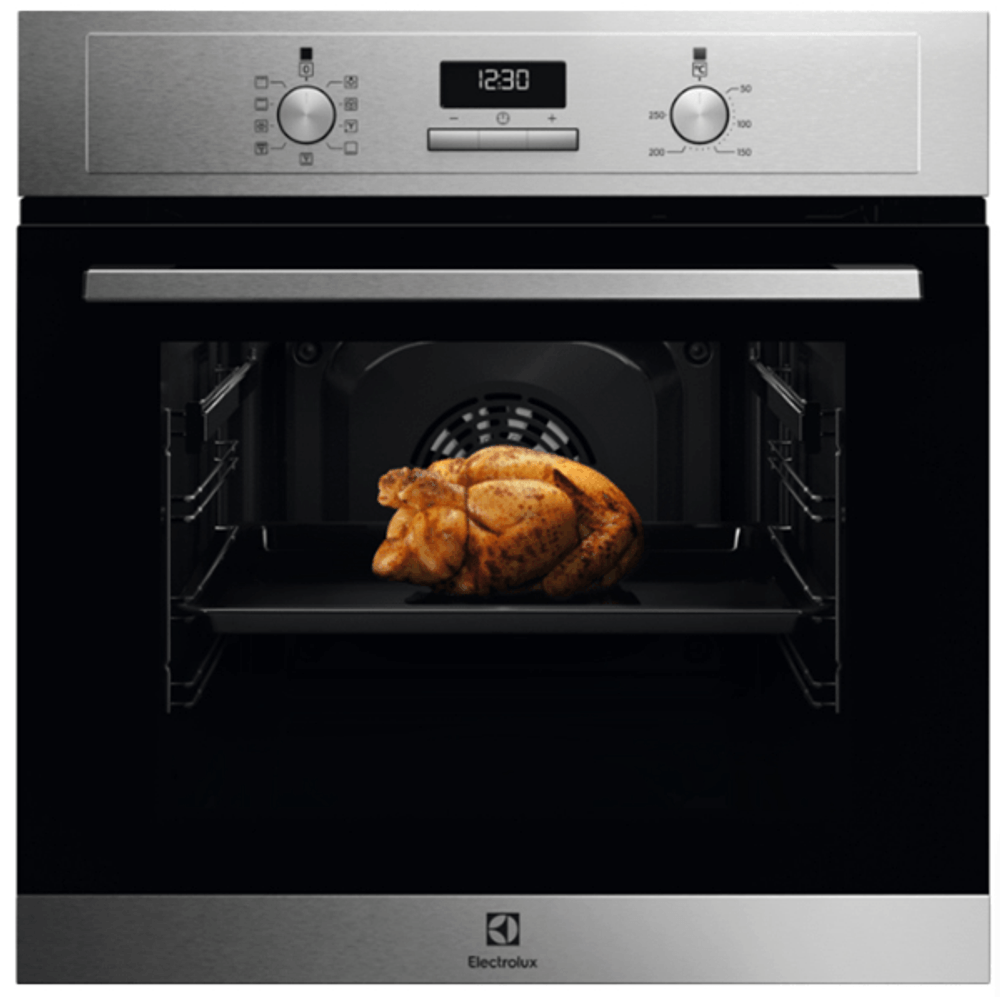 | descripcion_html | Electrolux EOF3H50BX. Tamaño del horno: Medio, Tipo de horno: Horno eléctrico, Total capacidad interior, horno (s): 65 L. Tipo de instalación: Integrado, Color del producto: Acero inoxidable, Tipo de control: Giratorio, Tocar. Tipo de temporizador: Digital, Modos del temporizador: Tiempo de cocción, Temporizador. Clase de eficiencia de energía: A, Consumo de energía (convencional): 0,89 kWh, Consumo de energía (convección forzada): 0,78 kWh. Ancho de compartimiento de instalación: 56 cm, Profundidad del compartimiento de instalación: 55 cm, Altura del compartimiento de instalación: 59,3 cm