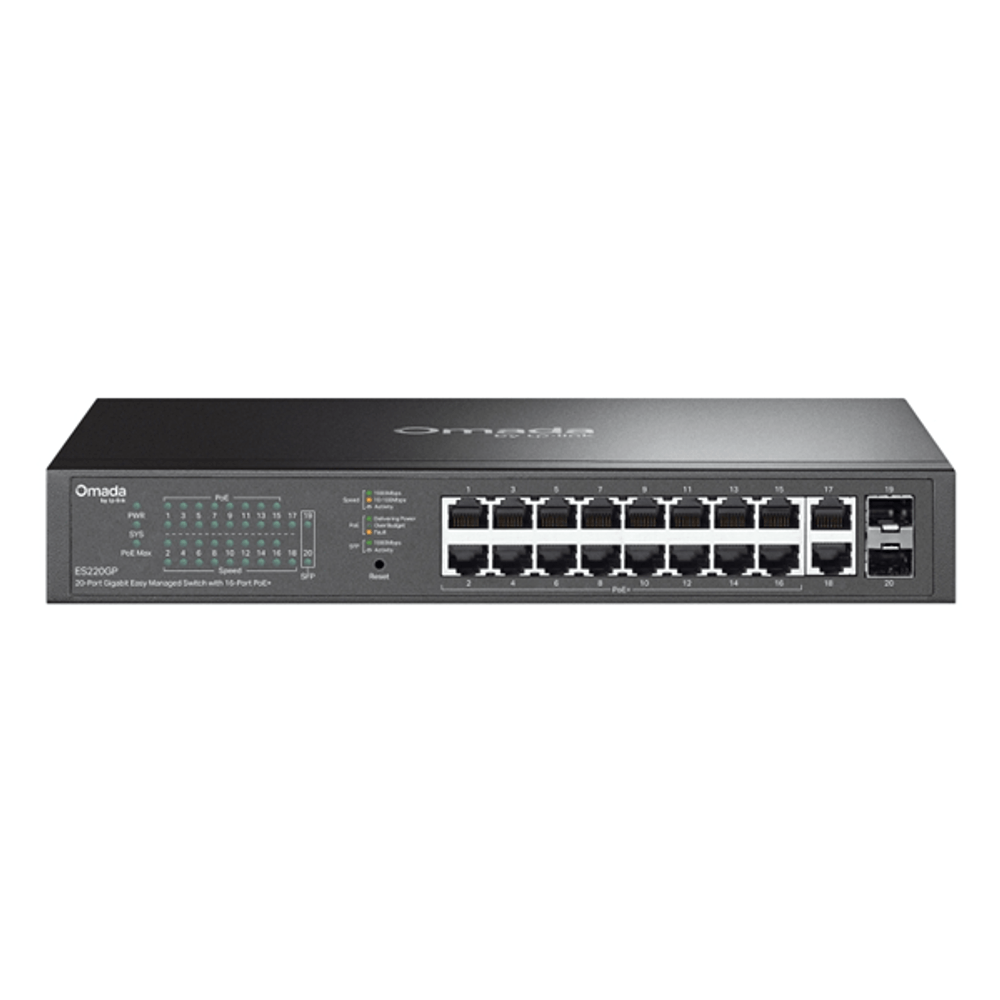 | descripcion_html | OMADA ES220GP. Tipo de interruptor: Gestionado. Puertos tipo básico de conmutación RJ-45 Ethernet: Gigabit Ethernet (10/100/1000), Cantidad de puertos básicos de conmutación RJ-45 Ethernet: 18. Tabla de direcciones MAC: 8000 entradas, Capacidad de conmutación: 40 Gbit/s. Estándares de red: IEEE 802.1Q, IEEE 802.1ab, IEEE 802.1p, IEEE 802.3af, IEEE 802.3at, IEEE 802.3x. Conector eléctrico: Conector de alimentación AC-in. Energía sobre Ethernet (PoE). Montaje en rack