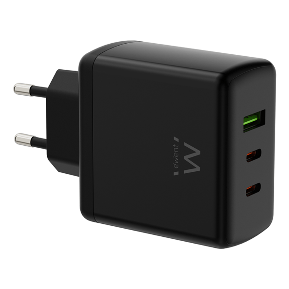 | descripcion_html | Ewent Cargador rápido GaN de 65W con 3 puertos (2 USB-C PD y 1 USB-A QC), diseño compacto. Tipo de cargador: Interior, Alimentación: Corriente alterna, Compatibilidad del cargador: Universal. Voltaje de salida máximo: 20 V. Cantidad de puertos USB 2.0: 1, Número de puertos USB Tipo C: 2, Carga rápida. Color del producto: Negro