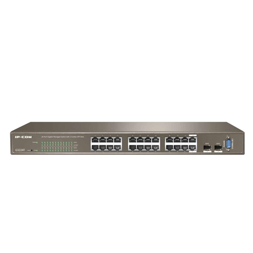 | descripcion_html | IP-COM Networks G3224T. Tipo de interruptor: No administrado, Capa del interruptor: L2. Puertos tipo básico de conmutación RJ-45 Ethernet: Gigabit Ethernet (10/100/1000), Cantidad de puertos básicos de conmutación RJ-45 Ethernet: 24, Número de módulos SFP instalados: 2. Bidireccional completo (Full duplex). Tabla de direcciones MAC: 8000 entradas, Capacidad de conmutación: 56 Gbit/s. Estándares de red: IEEE 802.1D, IEEE 802.1Q, IEEE 802.1p, IEEE 802.1w, IEEE 802.1x, IEEE 802.3, IEEE 802.3ab, IEEE.... Montaje en rack