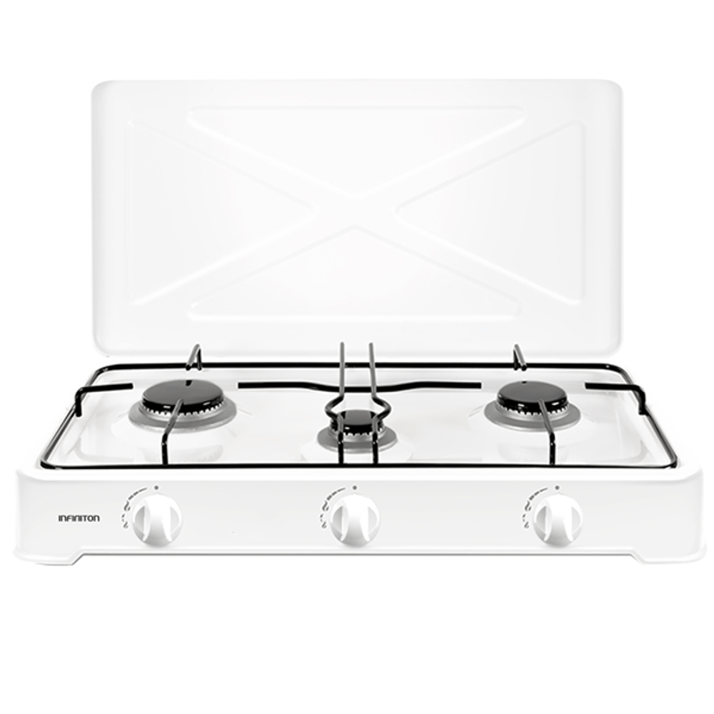 | descripcion_html | Infiniton GGP-3B. Color del producto: Blanco, Tipo de instalación: Encimera, Número de zonas de cocción: 3 zona(s). Tipo de control: Giratorio. Ancho: 371 mm, Profundidad: 602 mm, Altura: 95,8 mm