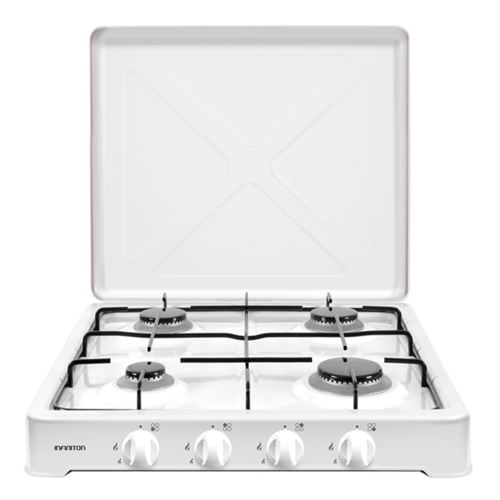 | descripcion_html | Infiniton GGP-4F. Color del producto: Blanco, Tipo de instalación: Encimera, Número de zonas de cocción: 4 zona(s). Tipo de control: Giratorio. Ancho: 558,8 mm, Profundidad: 494,4 mm, Altura: 154,5 mm