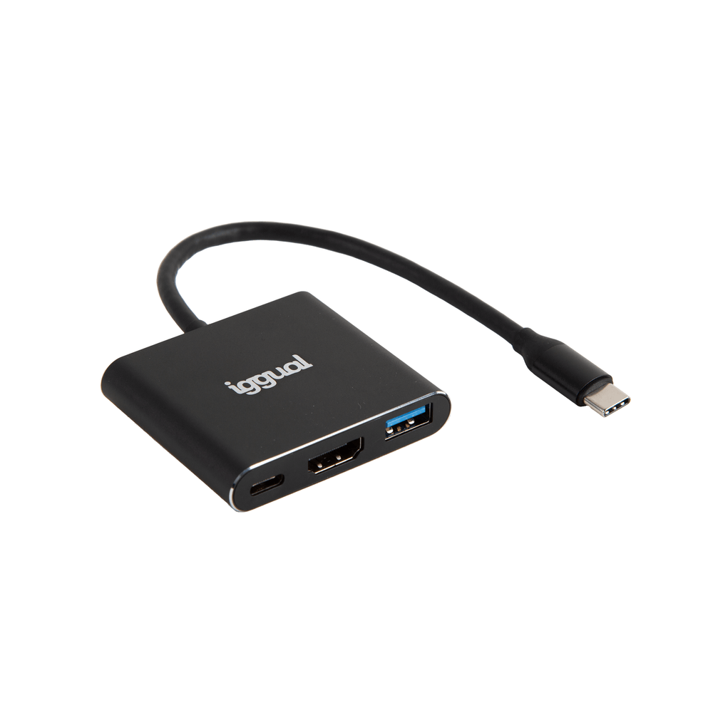 | descripcion_html | iggual Hub tipo C 3 en 1 HDMI USB3.0 PD100W. Interfaz de host: USB 3.2 Gen 1 (3.1 Gen 1) Type-C, Entrega de energía USB (USB Power Delivery) de hasta: 100 W. Color del producto: Negro, Tipo HD: 4K Ultra HD, Interfaces de concentradores: HDMI, USB 3.2 Gen 1 (3.1 Gen 1) Type-A, USB 3.2 Gen 1 (3.1 Gen 1) Type-C. Tipo de fuente de alimentación: USB. Ancho: 51 mm, Profundidad: 58 mm, Altura: 11 mm. Cantidad por paquete: 1 pieza(s)