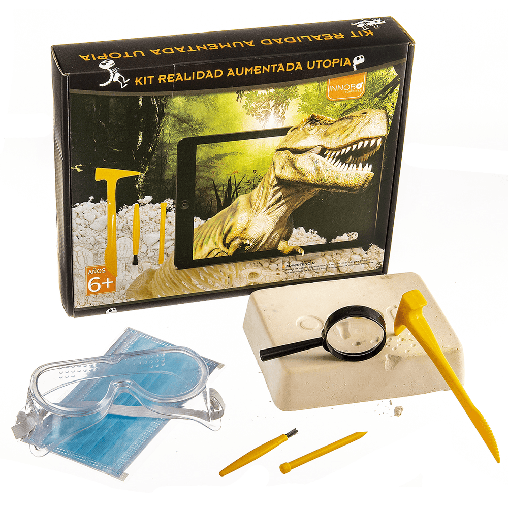 Incluye: huesos dinosaurio, 1 martillo, 1 pincel, 1 cincel, 1 gafas de seguridad