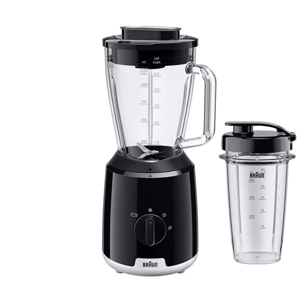 | descripcion_html | Braun JB1051. Capacidad del tazón: 1,25 L, Tipo de control de velocidad: Paso, Tipo de control: Giratorio. Tipo: Batidora de vaso, Color del producto: Negro, Longitud del cable: 0,9 m. Material de la cuchilla: Acero inoxidable, Material de las jarras: Vidrio. Potencia: 600 W, Fuente de energía: Corriente alterna. Ancho: 195 mm, Altura: 373 mm, Peso: 1,91 kg