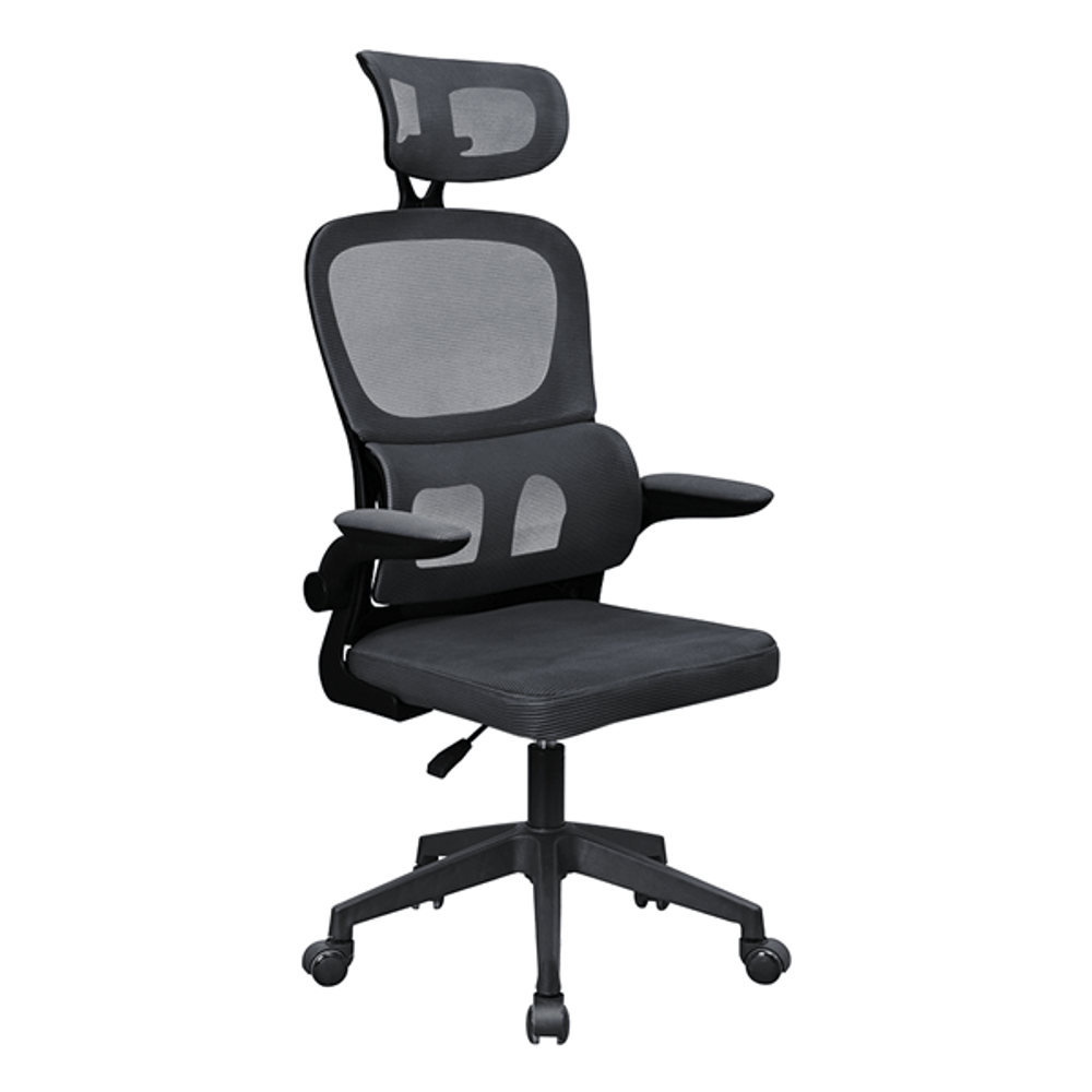 SILLA DE OFICINA EQUIP DE MALLA COLOR GRIS OSCURO RECUBRIMIENTO PU DE ALTA CALIDAD DISE??O ERGONOM