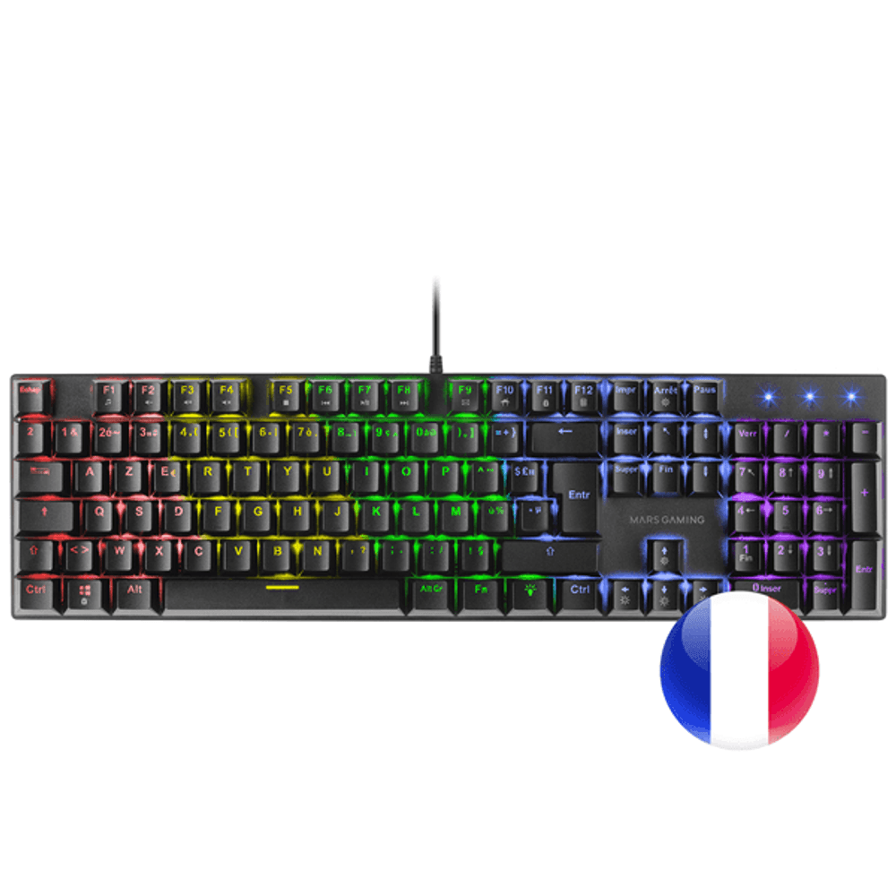 | descripcion_html | Mars Gaming MK422 Negro Teclado Mecánico Gaming RGB Antighosting Switch Mecánico Azul Idioma Francés. Formato del teclado: Completo (100%), Tecnología de conectividad: Alámbrico, Interfaz del dispositivo: USB, Interruptor del teclado: Interruptor mecánico, Diseño de teclado: AZERTY. Tipo de retroiluminación: LED RGB. Longitud de cable: 1,5 m. Uso recomendado: Juego. Color del producto: Negro