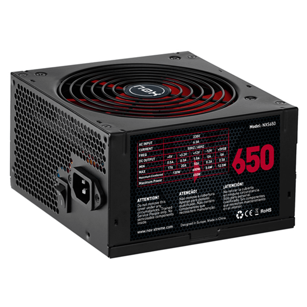 | descripcion_html | NOX NXS650. Potencia total: 650 W, Voltaje de entrada AC: 230 V, Frecuencia de entrada AC: 50 - 60 Hz. Alimentador de energía para tarjeta madre: 20+4 pin ATX, Tipo de cableado: No modular. Utilizar con: PC. Color del producto: Negro, Rojo, Tipo de enfriamiento: Activo, Diámetro de ventilador: 14 cm. Ancho: 150 mm, Profundidad: 160 mm, Altura: 86 mm