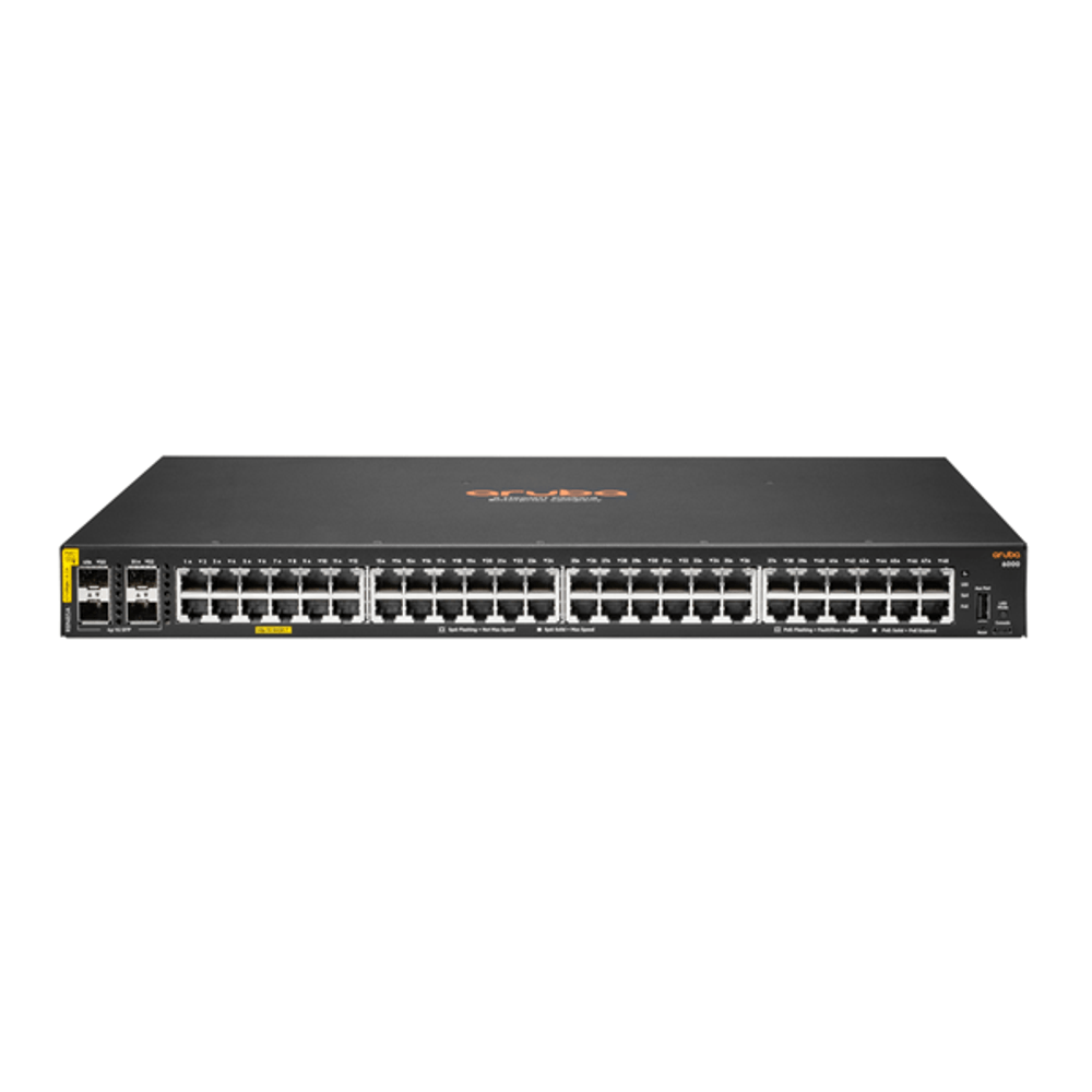 | descripcion_html | Hewlett Packard Enterprise Aruba 6000 48G Class4 PoE 4SFP 370W. Tipo de interruptor: Gestionado, Capa del interruptor: L3. Puertos tipo básico de conmutación RJ-45 Ethernet: Gigabit Ethernet (10/100/1000), Cantidad de puertos básicos de conmutación RJ-45 Ethernet: 48, Puerto de consola: USB. Tabla de direcciones MAC: 8192 entradas, Capacidad de conmutación: 104 Gbit/s. Estándares de red: IEEE 802.1D, IEEE 802.1Q, IEEE 802.1p, IEEE 802.1s, IEEE 802.1w, IEEE 802.3, IEEE 802.3ab, IEEE.... Energía sobre Ethernet (PoE). Montaje en rack, Factor de forma: 1U