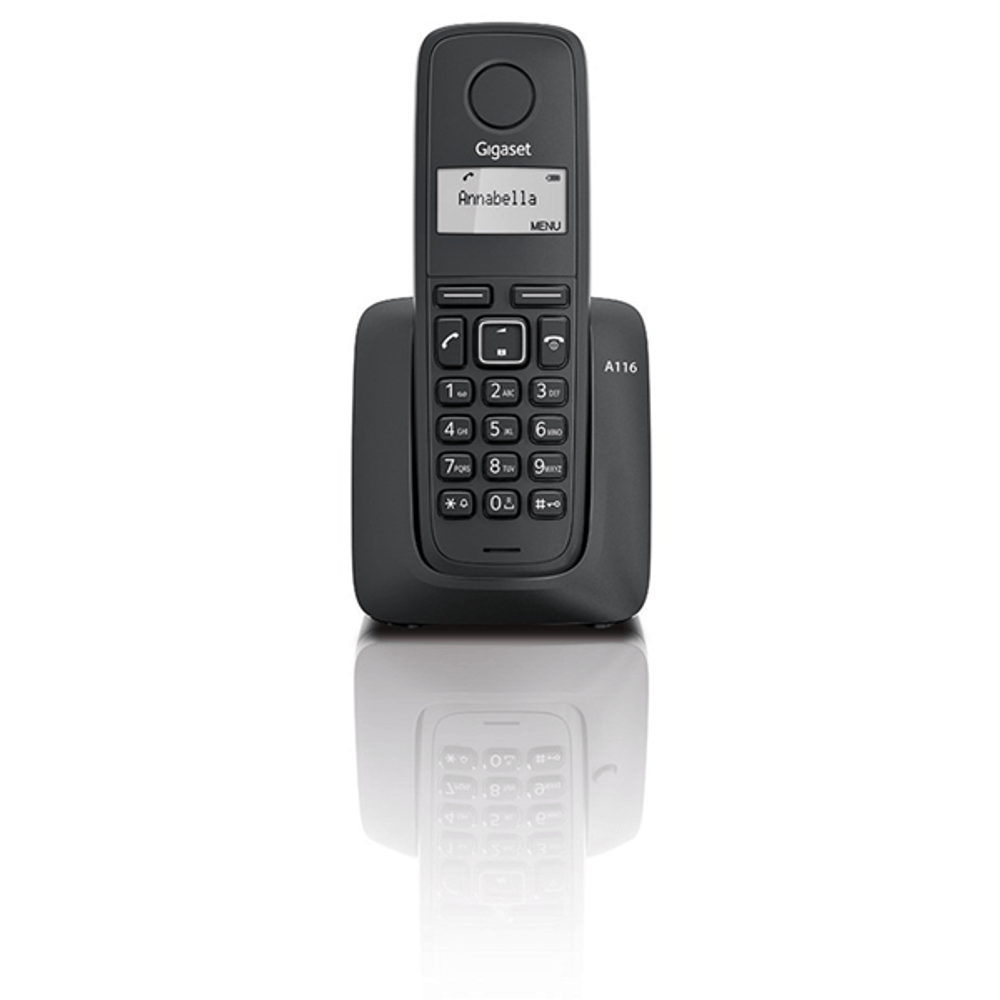| descripcion_html | Gigaset A116. Tipo: Teléfono DECT, Tipo de auricular: Terminal inalámbrico, Rango máximo en interiores: 50 m, Rango máximo en exteriores: 300 m. Capacidad de lista de direcciones: 50 entradas. Identificador de llamadas. Color del producto: Negro. Número de teléfonos móviles incluidos: 1