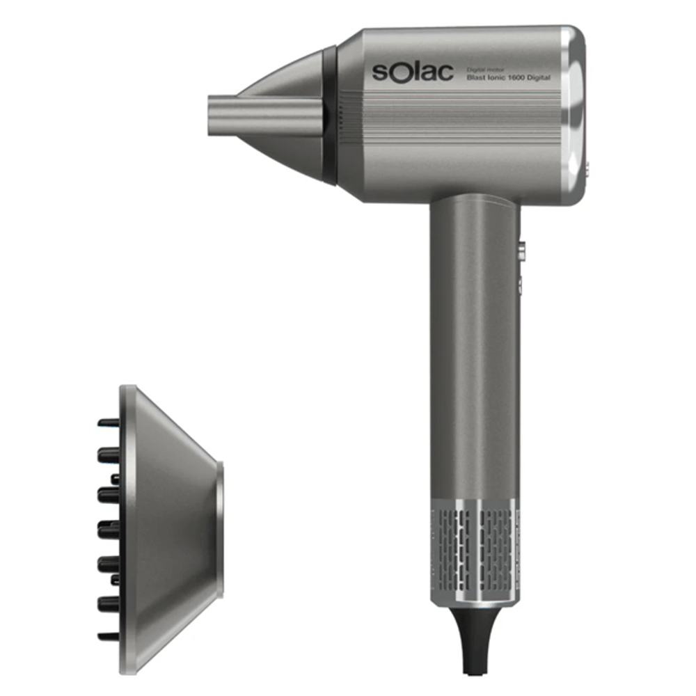 | descripcion_html | Solac Blast Ionic 1600 Digital. Tipo de motor: Digital, Velocidad del motor: 110000 RPM. Color del producto: Gris, Coloración de superficie: Monocromo, Longitud del cable: 1,65 m. Potencia: 1600 W, Voltaje de entrada AC: 220-240 V. Ancho: 80 mm, Profundidad: 110 mm, Altura: 280 mm