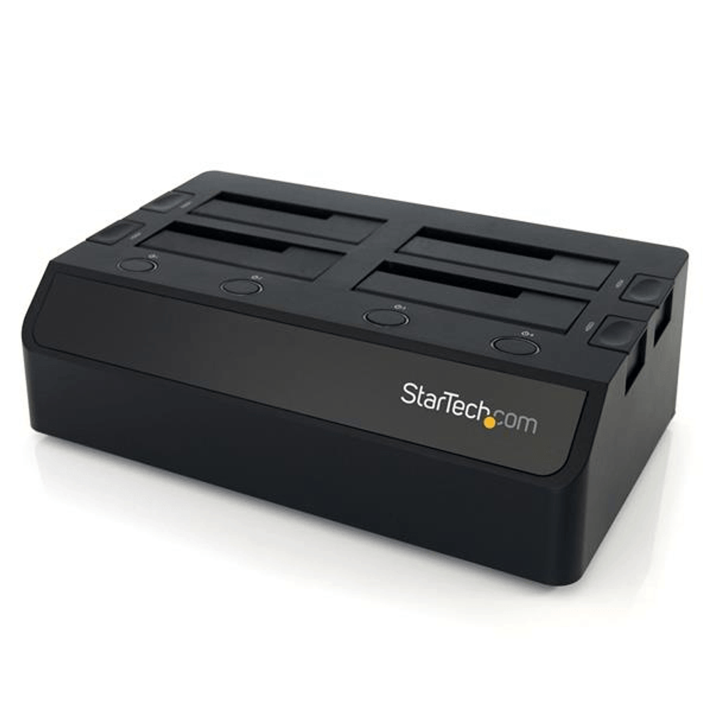 | descripcion_html | StarTech.com Base de Conexión USB 3.0 con 4 Bahías SATA 6Gbps de 2,5 y 3,5 Pulgadas - Docking Station para HDD SSD. Tipo de almacenamiento: Unidad de disco duro, SSD, Interfaz de unidad de almacenamiento: SATA, Serial ATA II, Serial ATA III, Tamaños de almacenamiento en disco soportados: 2.5,3.5". Interfaz de host: USB 3.2 Gen 1 (3.1 Gen 1) Type-B. Tasa de transferencia (máx): 6 Gbit/s, Color del producto: Negro, Material: De plástico. Número de ventiladores: 2 Ventilador(es), Diámetro de ventilador: 4 cm. Voltaje de entrada AC: 100-240 V, Corriente de entrada: 2.5 A, Voltaje de salida: 12 V