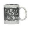 TAZA CERAMICA QUIEN NO DEBE SER NOMBRA BLANCA Y NEGRA HARRY POTTER