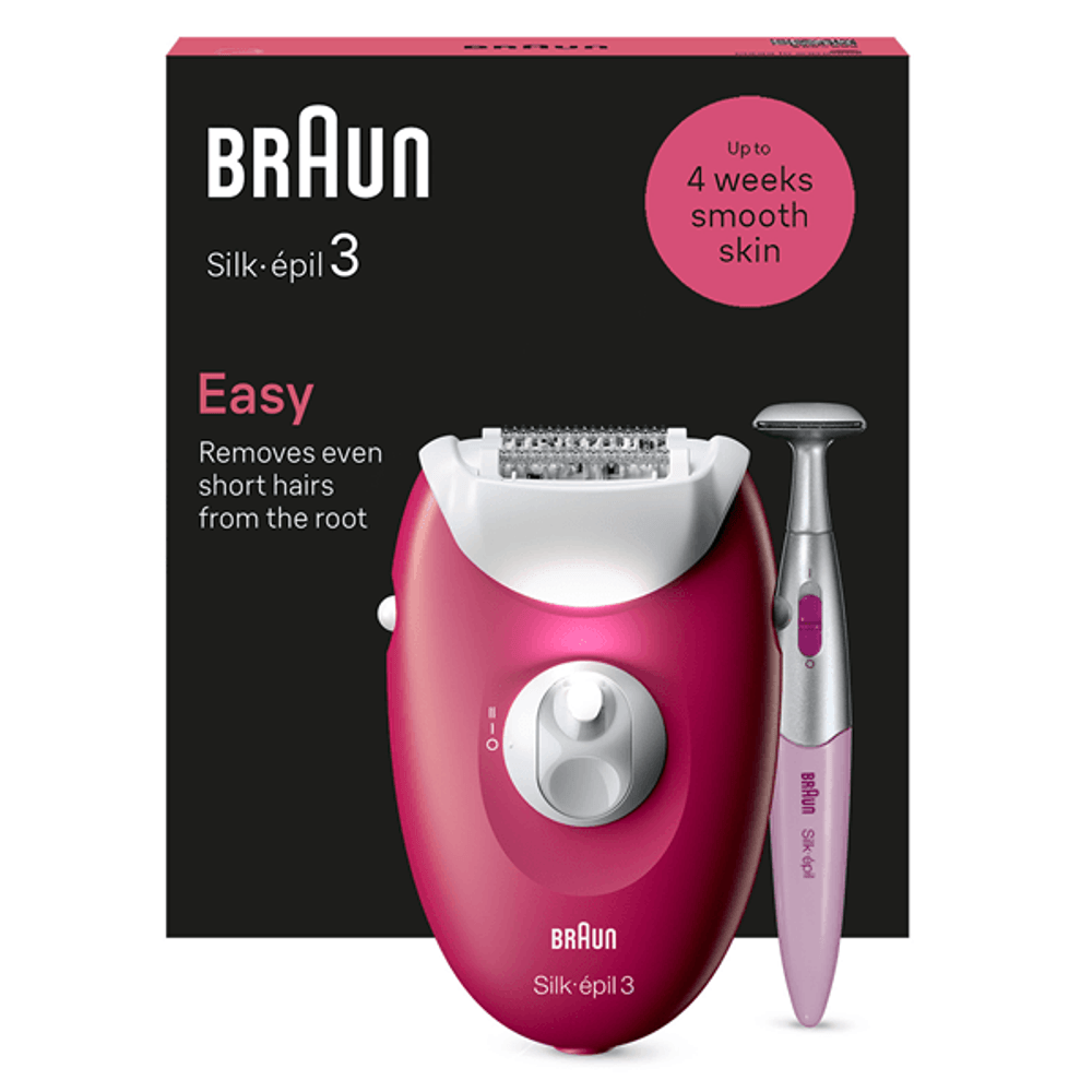DEPILADORA BRAUN SILK-EPIL 3 SE3-202 CON CABLE 20 PINZAS LUZ COLOR FRAMBUESA