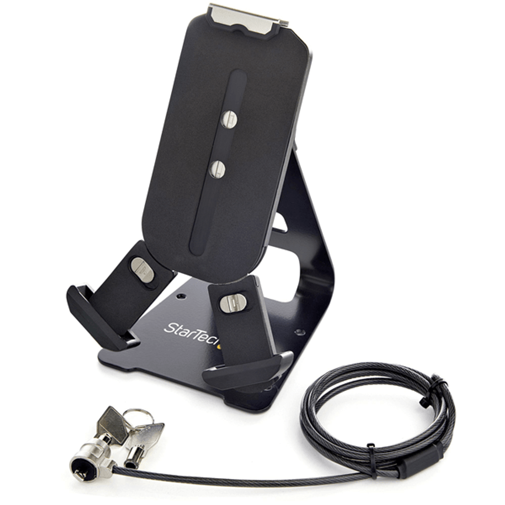 | descripcion_html | StarTech.com Soporte Seguro para Tablet con Cable de Seguridad con Candado K-Slot - Base para Tablets de 7,9 a 13 Pulgadas - Soporte Universal Ajustable de Sobremesa para Tablet - Soporte Antirrobo. Color del producto: Negro, Uso recomendado: Tableta, Tipo: Carro para administración de tabletas. Altura: 300 mm, Ancho: 136 mm, Profundidad: 118 mm. Ancho del paquete: 145 mm, Profundidad del paquete: 142 mm, Altura del paquete: 222 mm. Número de llaves incluidas: 2 pieza(s). Ancho de la caja principal: 315 mm, Longitud de la caja: 750 mm, Alto de la caja principal: 252 mm