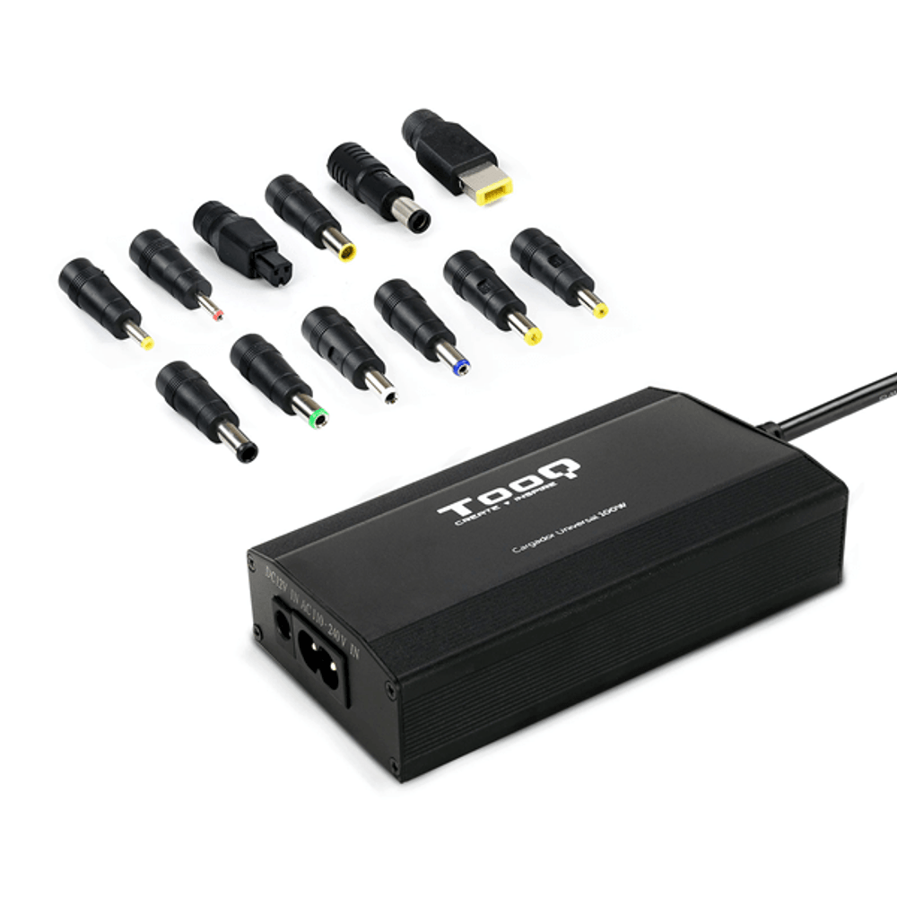 | descripcion_html | TooQ CARGADOR UNIVERSAL PORTATIL TQLC-100BS01M 100W 3 EN 1 USB. Utilizar con: Portátil, Tipo de fuente de alimentación: Auto/Interior, Voltaje de entrada: 110 - 240 V. Corriente de salida de adaptador AC: 5 A. Corriente de salida USB: 1 A, Voltaje de salida USB: 5 V. Color del producto: Negro. Ancho: 65 mm, Profundidad: 112 mm, Altura: 25 mm