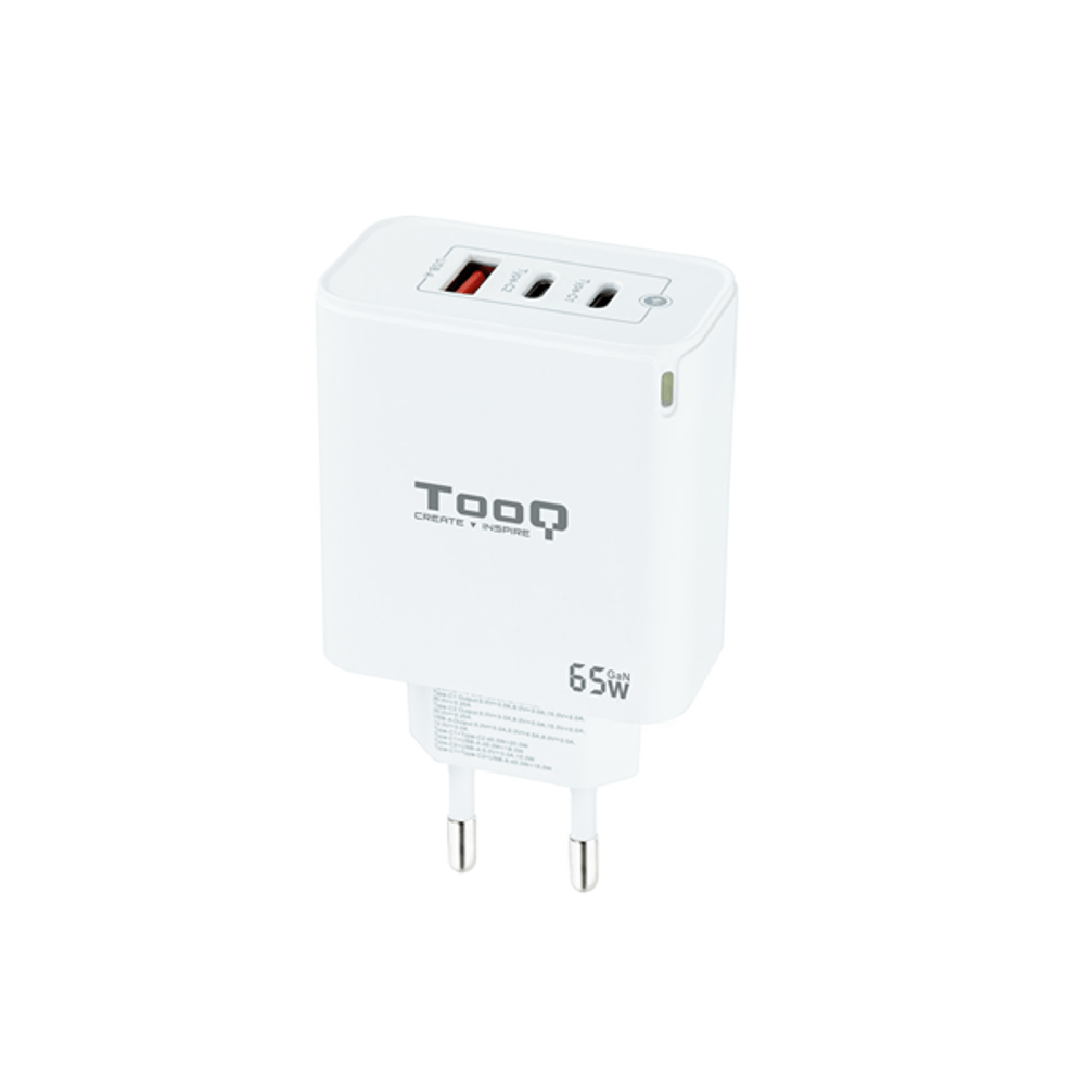 | descripcion_html | TooQ Cargador de Pared GaN 2USB-C/PD + USB-A/QC 65W, Blanco. Tipo de cargador: Interior, Alimentación: Corriente alterna, Compatibilidad del cargador: Universal. Voltaje de entrada: 100 - 240 V. Cantidad de puertos USB 2.0: 1, Número de puertos USB Tipo C: 2, Carga rápida. Color del producto: Blanco