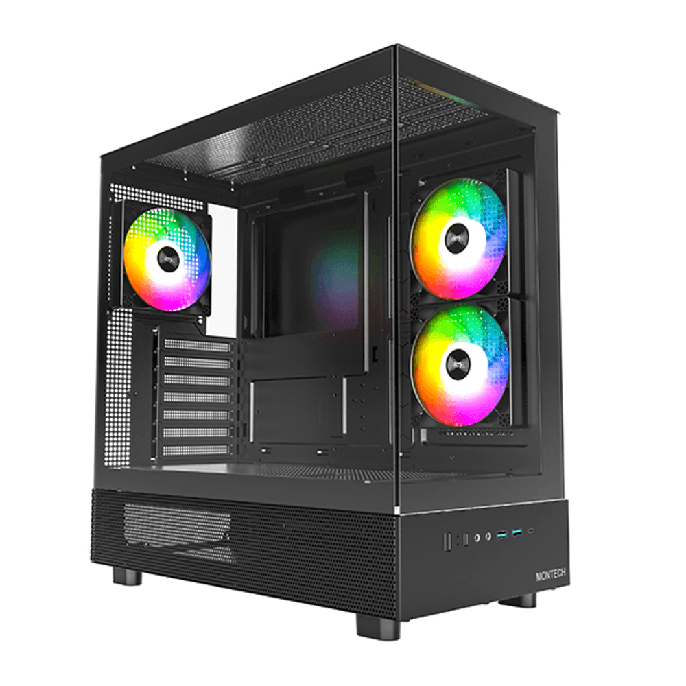 | descripcion_html | Montech XR. Factor de forma: Torre, Tipo: PC, Color del producto: Negro. Ventiladores laterales instalados: 2x 120 mm, Diámetro de ventiladores secundarios soportados: 120 mm, Ventiladores traseros instalados: 1x 120 mm. Tamaños de disco duro soportados: 3.5", Factor de forma de disco SSD: 2.5". Ancho: 230 mm, Profundidad: 435 mm, Altura: 450 mm